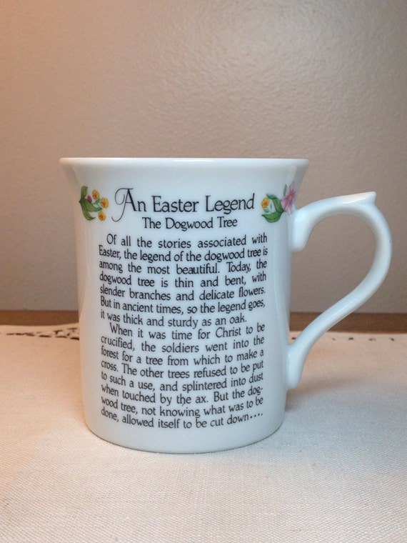 Vintage mug an easter legend the dogwood tree coffee cup papel porcelain japan.