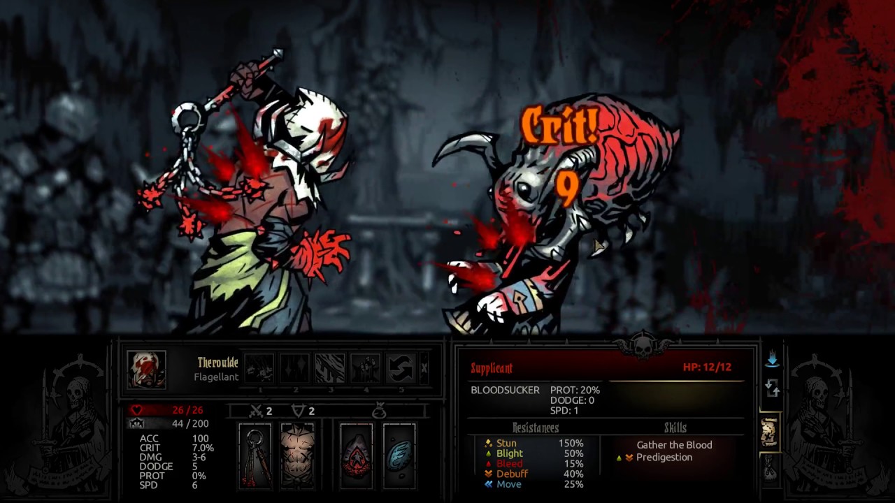 Darkest Dungeon Supplicant. They are not very tough or damaging, but are very fast and evasive, and can inflict your party with large amounts of stress and the crimson curse. Log in to add custom notes to this or any other game.