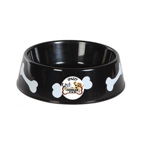 Dollar Tree Dog Bowls. Sturdy plastic dog bowls are perfect for large dogs! And is decorated with white dog bones along the outside.